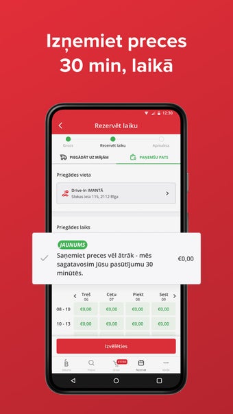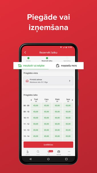 Aplikasi ini memungkinkan Anda memesan semua jenis produk dan mengambil pesanan di lebih dari 15.000 toko dan kios makanan di seluruh Riga, Latvia.